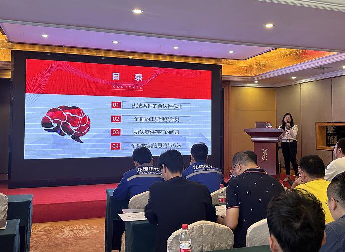 其間,為提高水務行政法律人員及管養單位等輔佐法律人員的法律水平和整體素質,龍崗區水務局安排全區水務法律部隊及事務主幹超150人,參加行政法律取證實務關鍵訓練活動,特別邀請廣東商拓律師事務所合夥人阮麗容律師進行授課。